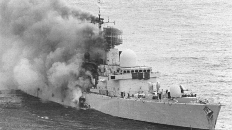 El 4 de mayo de 1982, el destructor HMS Sheffield fue alcanzado por uno de los dos misiles Exocet lanzado por un par de aviones Super Etendard que operaban desde la Base Aeronaval de Río Grande, en Tierra del Fuego.