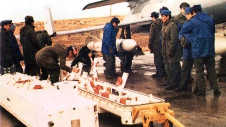 Carga de misiles Exocet en el Super Etendard, guerra de Malvinas
