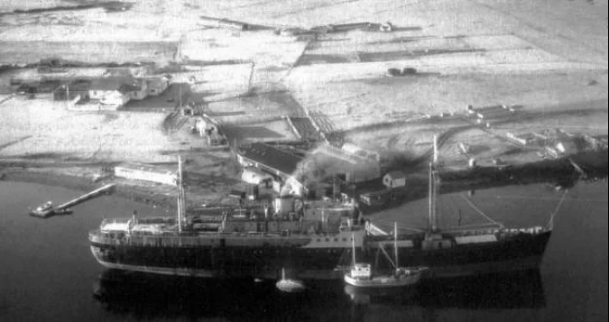 Por una fuerte tormenta, el muelle antiguo de madera cedió y el barco quedó varado sin propulsión, por lo que descargó todo lo que aún tenía en bodegas.